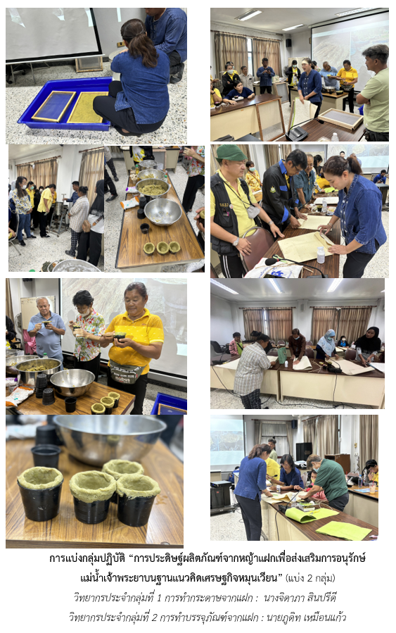 การอบรมเชิงปฏิบัติการเกี่ยวกับการใช้หญ้าแฝกเพื่อป้องกันการพังทลายของตลิ่งและฟื้นฟูพื้นที่ริมน้ำ และการแปรรูปผลิตภัณฑ์จากหญ้าแฝก